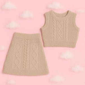 Beige Cable-Knit Two-Piece Set | Sleeveless Sweater Vest & Mini Skirt | Cozy Chic Fall/Winter Outfit